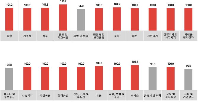 특히 대형 할인마트 등 유통(103.3) 업종에서는 물놀이 아이템, 캠핑용품 등 여름 휴가철 관련 상품들의 신규 광고 집행이 증가한 사유로 꼽혔습니다.