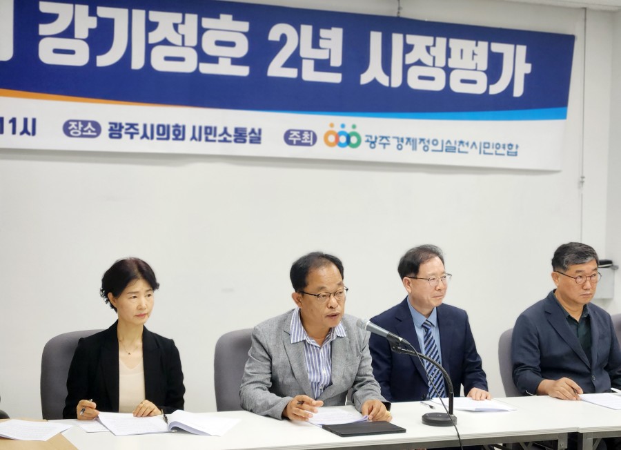 광주경제정의실천시민연합은 오늘 광주시의회 시민소통실에서 '민선 8기 강기정호 2년 시정평가' 기자회견을 열었습니다.