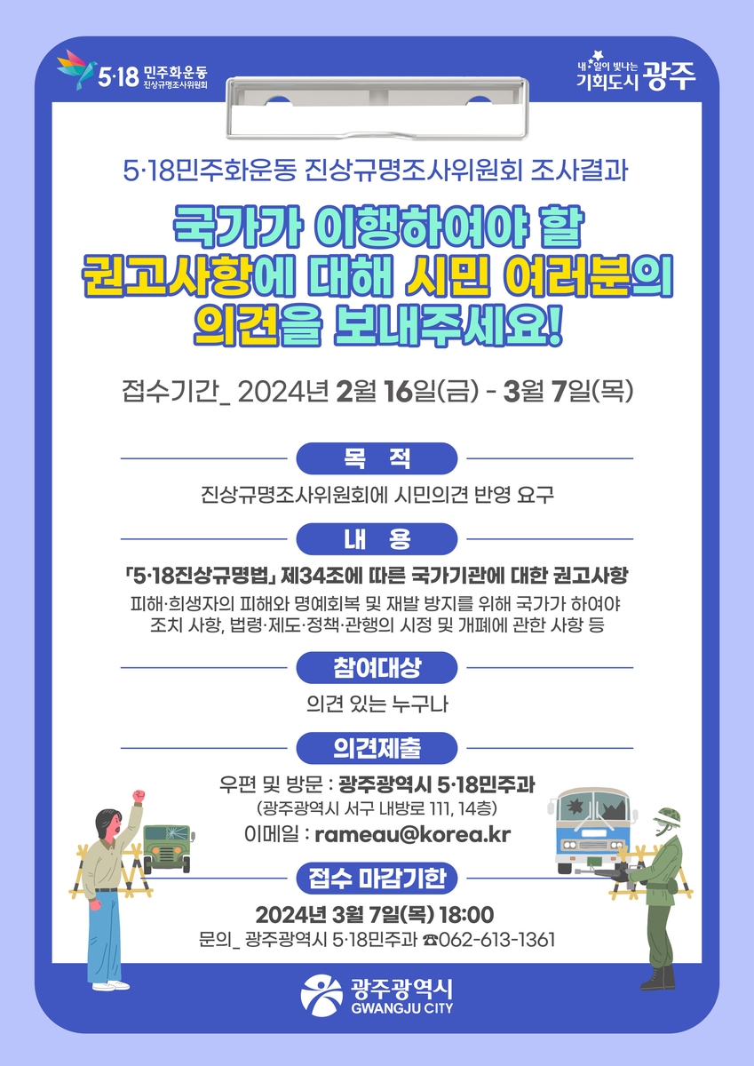 광주시, 5·18 조사결과 보고 앞두고 시민 의견 접수