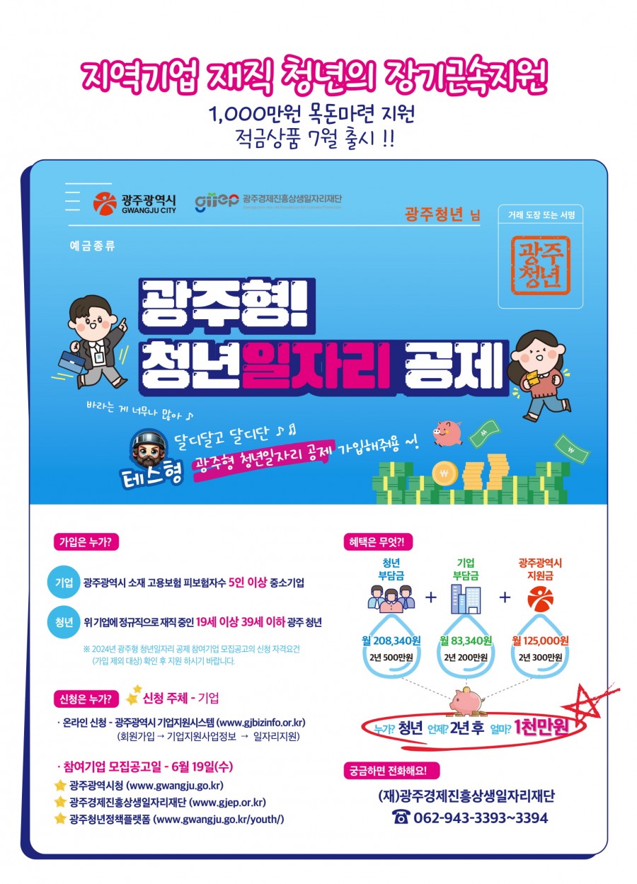 이 사업은 중소기업 재직 청년이 2년간 500만원을 모으면 기업이 200만원, 광주시가 300만원을 추가로 적립해 만기 공제금 1천만원을 만들어주는 것입니다.