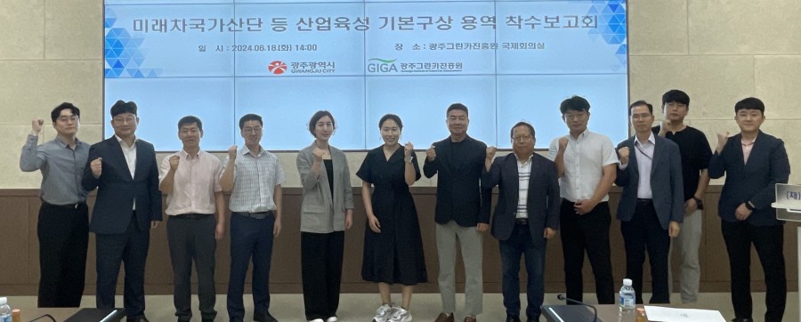 광주시와 광주 그린카 진흥원은 그린카 진흥원에서 미래 차 국가산단 등 산업 육성 기본 구상 용역 착수보고회를 열었습니다.