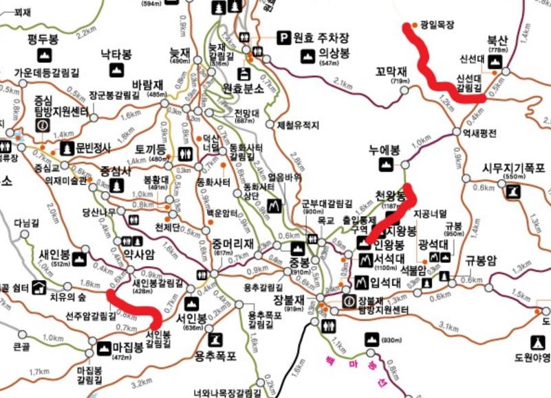 그리고 선주암 갈림길에서 서인봉 갈림길 등 3곳입니다.