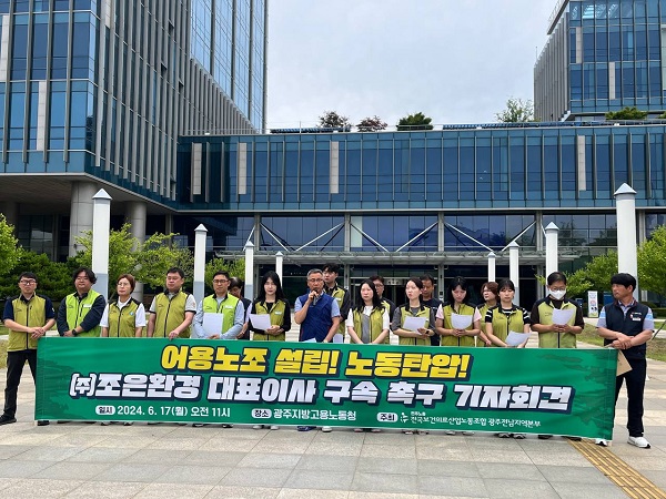 민주노총 전국보건의료산업노동조합 광주·전남지역본부는 "어용노조를 만들어 노동조합 업무에 개입한 미화 업체 대표를 구속 수사해야 한다"고 주장했습니다.