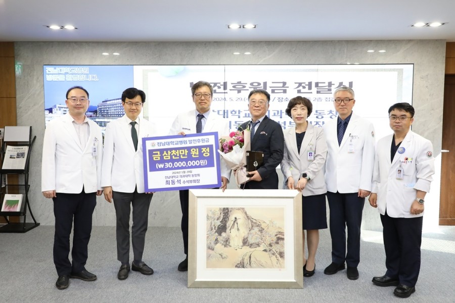 전남대학교 의과대학 동창회 최동석 수석부회장이 전남대학교병원에 발전후원금 3천만원과 그림작품을 기탁했습니다.