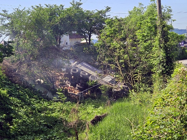 전남 화순서 24t 하수청소차량 넘어져…2명 중상