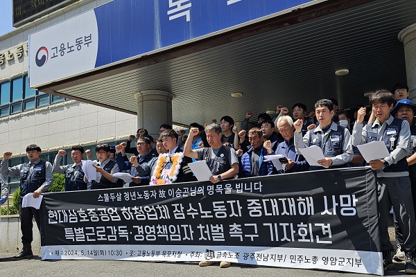 전국금속노동조합 광주전남지부는 "삼호중공업에서 발생한 하청업체 소속 잠수사의 사망은 중대재해"라고 주장했습니다.
