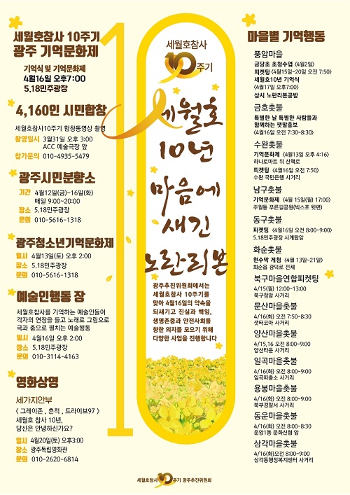 '세월호 10주기' 광주·전남서 추모 행사 잇따라