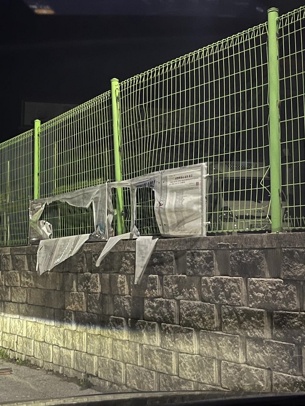 어제 오전 북구 생용동 한 마을 복지회관 앞에 부착된