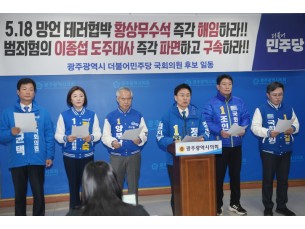 더불어민주당 광주지역 예비후보들이언론인 테러와 5·18 왜곡 발언을 한 황상무 대통령실 시민사회수석의 즉각적인 파면을 촉구..