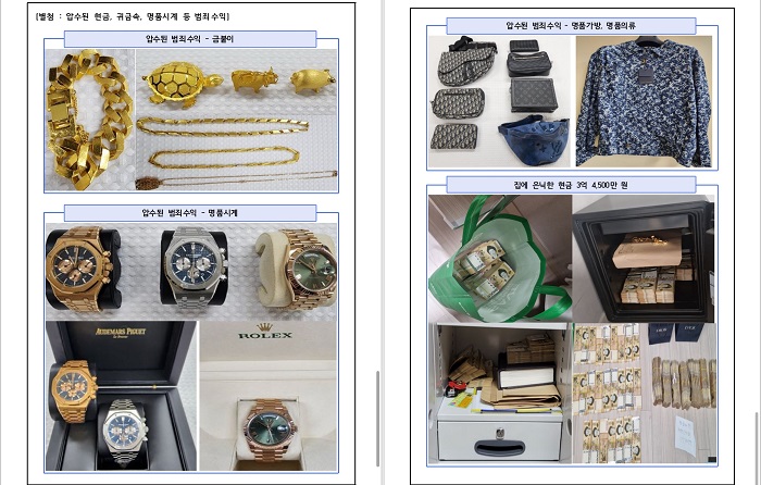 7억원 상당의 범죄수익을 압수했다고 밝혔습니다.