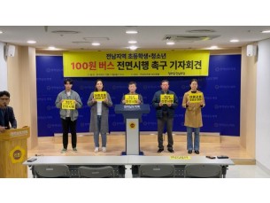 정의당 전남도당은 오늘 오전 전남도의회에서 기자회견을 열고 전남지역의 모든 초등학생과 청소년들이 이용할 수 있도록 100원..