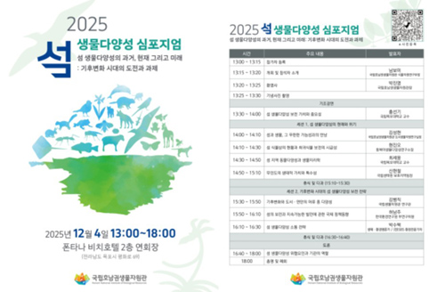 국립호남권생물자원관은 다음 달 4일 목포 폰타나비치호텔에서 ‘2025 섬 생물다양성 심포지엄’을 개최한다고 밝혔습니다.