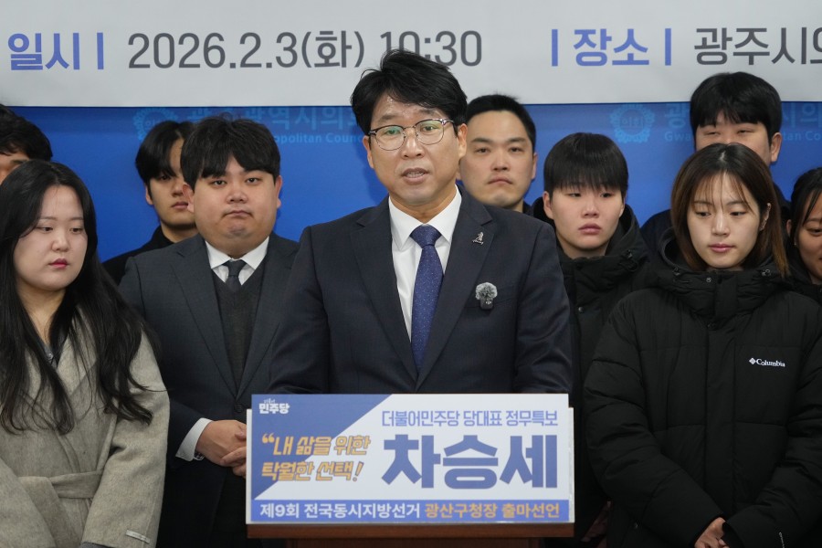 차승세 더불어민주당 당대표 정무특보는 오늘 광주시의회에서 기자회견을 열고 광주 광산구청장 출마를 선언했습니다.