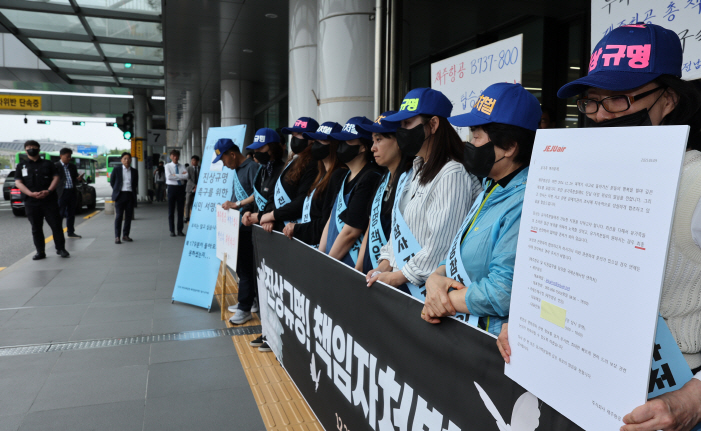 제주항공 여객기 참사 유가족들은 오늘 김포국제공항 앞에서 기자회견을 열고  "참사에 대한 진상규명이 이뤄지기도 전에 최종 합의를 제안한 제주항공을 규탄한다"고 밝혔습니다.