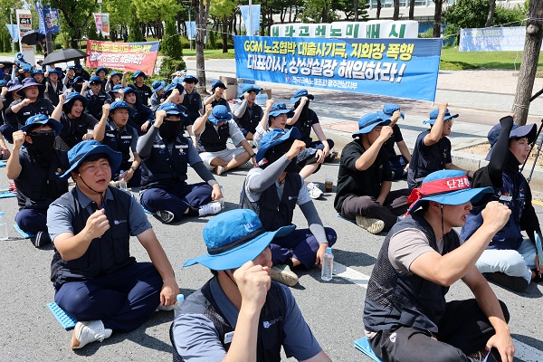 금속노조 광주전남지부는 오늘 광주시청 앞에서 결의대회를 열고 사측이 노조 파업을 빌미로 대출금 조기 상환 문제를 왜곡했다며 규탄했습니다.