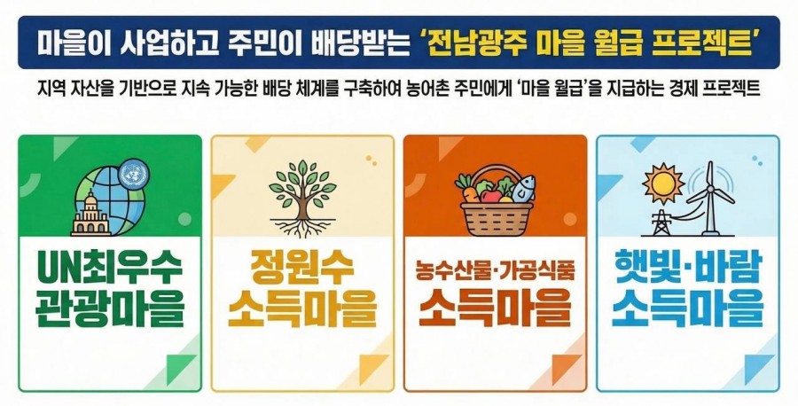 더불어민주당 전남광주통합특별시장 경선 후보인 민형배 의원은 오늘 농어촌 자산을 활용해 마을 단위 수익을 창출하고 주민에게 배당하는 '농어촌 마을월급 프로젝트'를 추진하겠다고 발표했습니다.