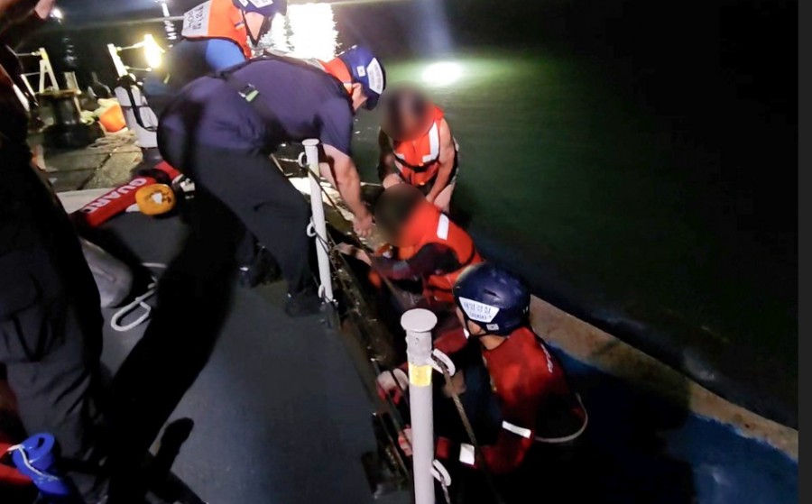 해경이 신고 30여분 만에 현장에 도착해 전복된 어선 바닥에서 구명조끼를 입고 기다리고 있던 60대 부부를 무사히 구조했습니다.