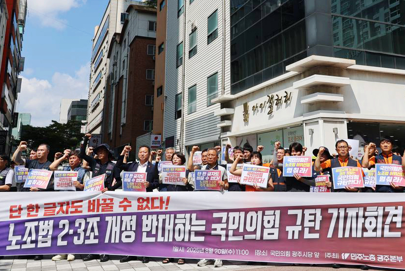 민주노총 광주본부가 오늘(20일) 국민의힘 광주시당에서 집회를 열고 노란봉투법으로 불리는 노조법 2·3조 개정안의 신속한 국회 통과를 촉구했습니다.