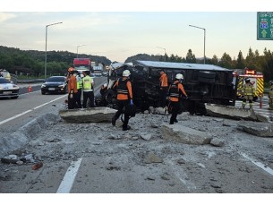 전남 담양의 고속도로에서 트레일러에 실린 대형 화물이 떨어지며 차량 3대가 파손되고 운전자 1명이 중상을 입었습니다.사고는..