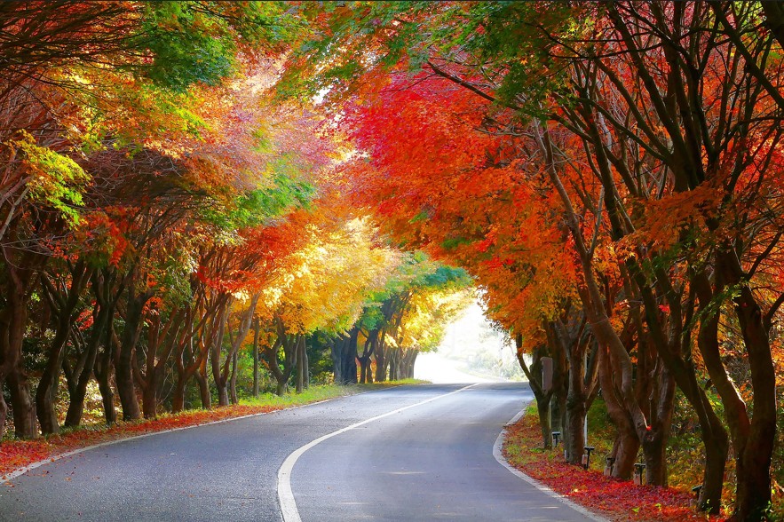 히 진산리에서 지리까지 약 3km 도로 양쪽에 약 30년 된 단풍나무가 긴 터널을 이루고 있는데 걷기나 드라이브를 즐길 수 있는 최적의 코스로 꼽힙니다.