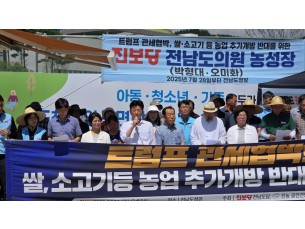 진보당 전남도당과 전국농민회 광주전남연맹, 전남비상행동은 "미국이 요구하고 있는 쌀과 소고기 등 농축산물 추가 개방을 반..