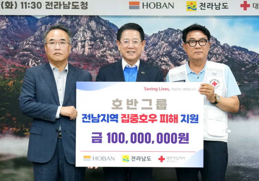 호반그룹이 집중호우로 큰 피해를 본 전남지역 주민을 돕기 위해 성금 1억 원을 기탁했습니다.