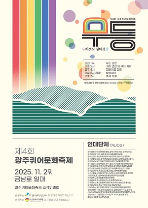 광주퀴어문화축제 조직위원회는 오는 29일 동구 금남로 1~3가 일대에서 제4회 축제를 개최한다고 밝혔습니다.