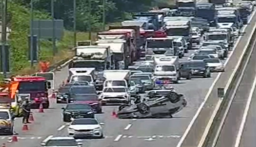 사고 충격으로 SUV는 중앙분리대를 들이받고 전복됐으며, 경상을 입은 운전자는 치료를 받고 있습니다.