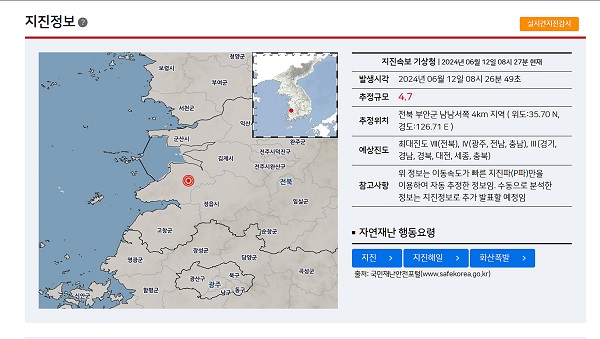 4.8 규모의 지진이 전북 부안에서 발생한 가운데 광주와 전남에 지진 피해는 없었지만 진동을 느낀 시민들의 신고가 폭주했습니다.