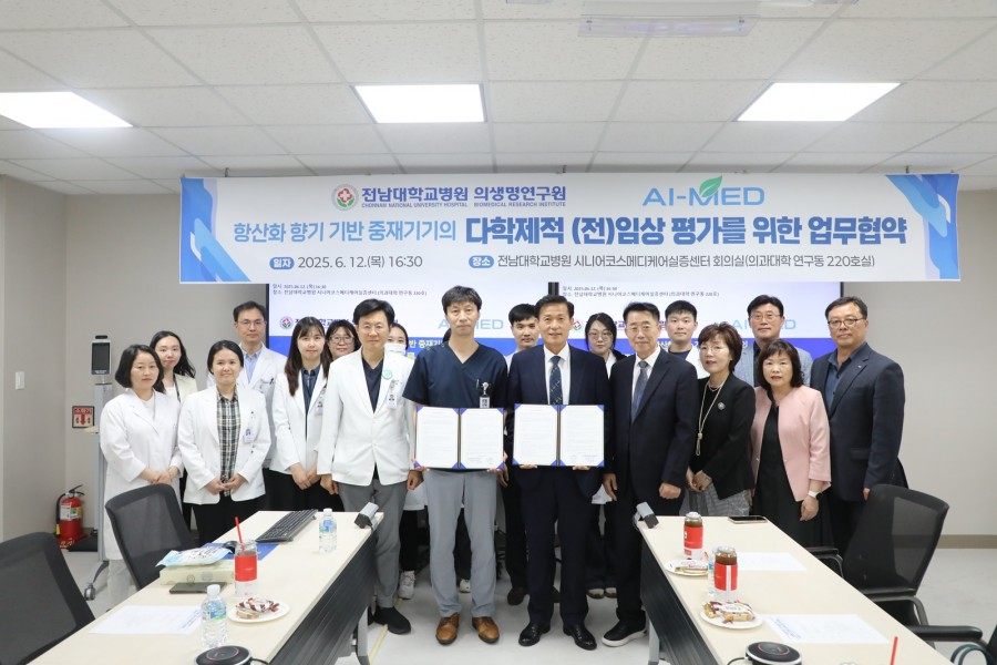 전남대병원 의생명연구원과 AI-Med(에이아이메드)는 지난 12일 ‘항산화 향기 기반 중재기기의 다학제적 (전)임상 평가’를 위한 업무협약을 체결했습니다.