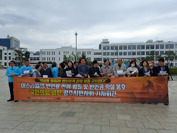 광주시민단체협의회 등도 5·18민주광장에서 기자회견을 열고 “전쟁 범죄를 규탄하는 국제적 양심에 연대한다”고 밝혔습니다.